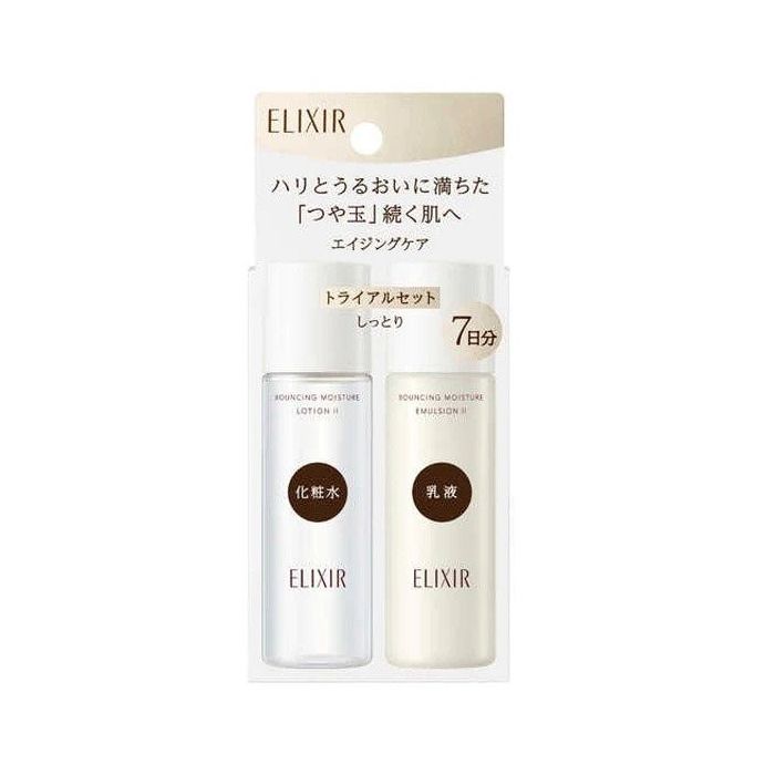 A skincare set that offers age-specific moisturizing care, providing smooth, elastic, and radiant skin with a 7-day trial of milky toner and emulsion, enhanced by a delightful aqua floral scent, ensuring your skin shines every day.