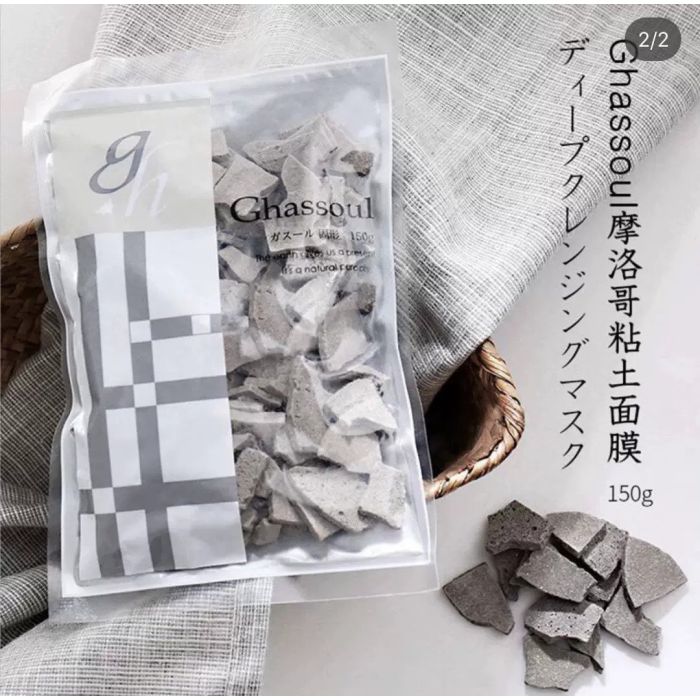 Naiad Ghassoul Beauty Natural Clay Pieces, a multi-purpose facial pack that deeply cleanses, removes makeup, cleanses the face, moisturizes, and removes blackheads in one easy application by dissolving it in water. It leaves your skin radiant and glowing.