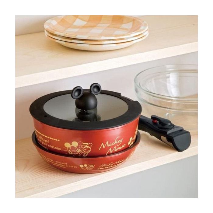 SKATER Mickey and Friends 2 Piece Nabe & Pan Set with Removable Handle, 7.9 inches (20 cm), Frying Pan, 7.9 inches (20 cm), Glass Lid, 7.9 inches (20 cm)
