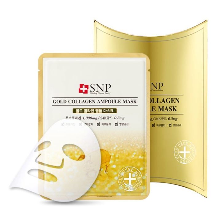 Collagen fused with gold particles in a natural mask that perfectly fits your skin. The use of 24K gold improves the absorption of the added collagen to recover the resilience of healthy skin. With the effective properties of gold which expel toxins from the body and effectively calms skin to help prevent aging. Contains 1,000mg of pig hide collagen nourishes and firms skin.